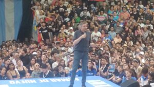 “agradezco de corazón y segundo traerles un enorme abrazo de la compañera cristina, después que me ayuden un poco hoy y hagamos el esfuerzo de reflexionar», comenzó diciendo«, creo que tenemos muy claro la situación de nuestro país y que millones de argentinos sufren a diario siendo aparte este el comienzo ante el despliegue de estas políticas económica que de profundizar su camino y un tiempo van a afectar a más argentinos y argentinas».
