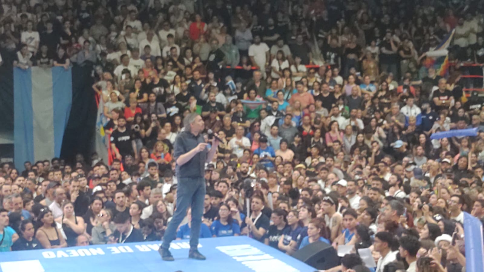 Con dos escenarios armados dentro y fuera del estadio ATENAS. El discurso estuvo plagados de cuestionamientos directos e indirectos a distintos referentes pero, con una clara disertación de absoluta realidad política.