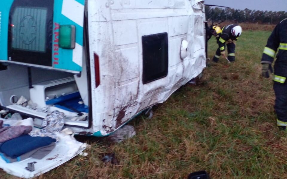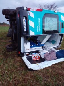 Una ambulancia del Distrito Roque Pérez, volcó a la altura del km 117 de la Ruta 205.